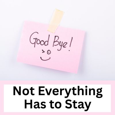 - A pen and post-it notes. I like to use these for making lists or reminding myself to do things. I also like to put post-it notes on cabinets and drawers when I’m sorting out where things should be stored. Just be careful not to have too many loose notes all over the place.